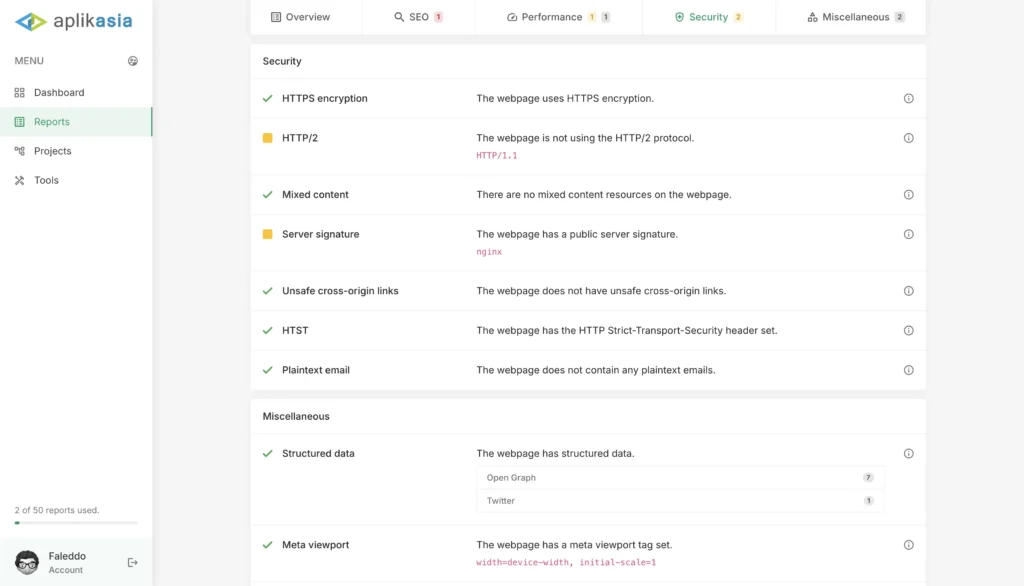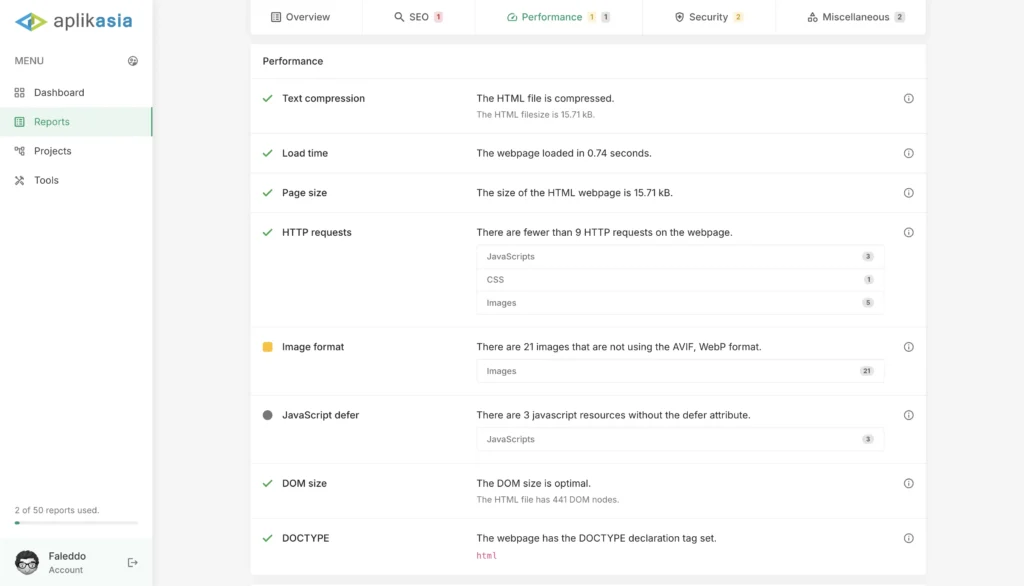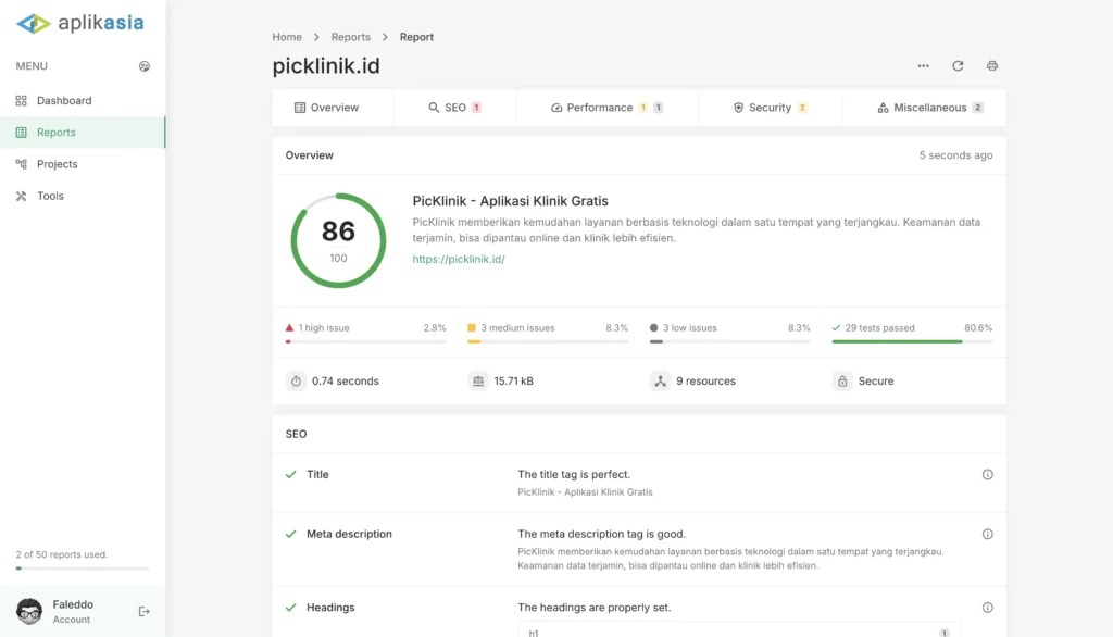 Tidak hanya menghasilkan laporan SEO yang lengkap, aplikasi juga memberikan saran untuk perbaikan SEO website.