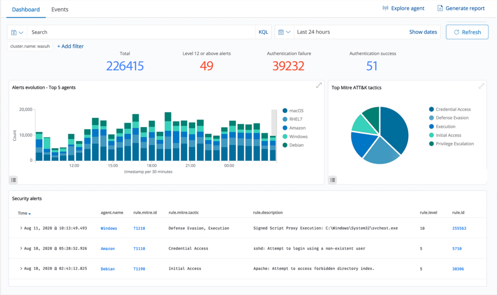 Dashboard yang intuitif dan dapat disesuaikan untuk dengan melihat gambaran keamanan sistem.